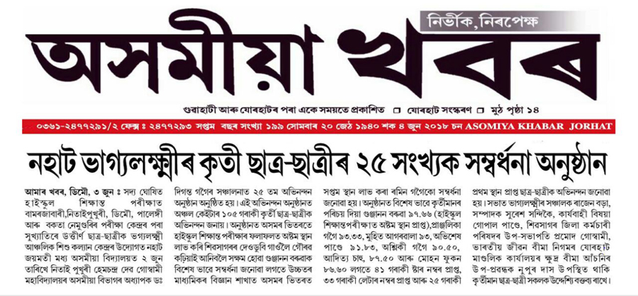 Felicitation Programme Of Excelled Students Of HSLC Exam, 2018.