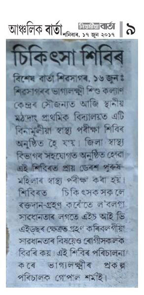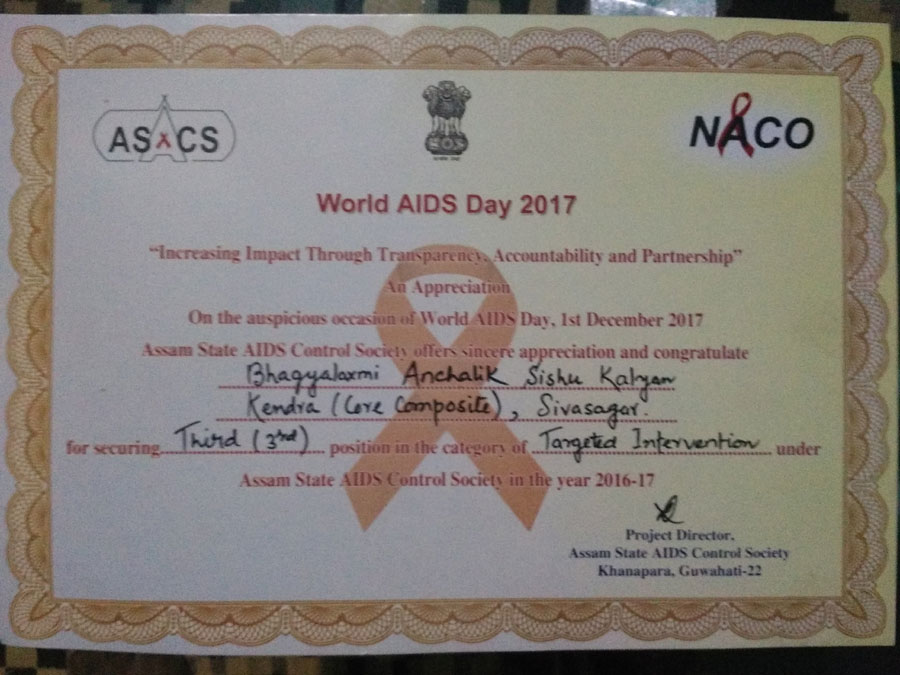 Paper cut, NGO secured 3rd position in Assam in the field of preventation and control of AIDS.